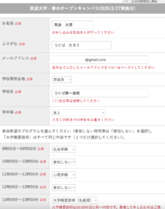 筑波大学2026春のオープンキャンパスの申し込みは、仮登録を行なってから本登録を行う形となります。