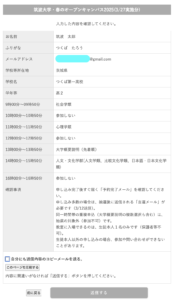 その後、送信するを押下すると、仮申込の時と同じようにメールが届きます。メールが届くまで時間がかかることも想定されます。10−15分ほどお待ちください。