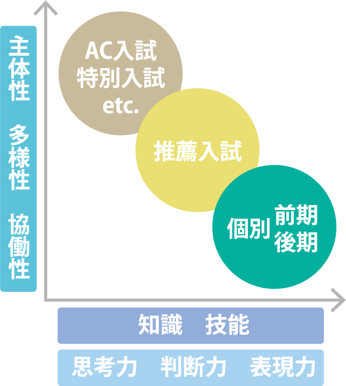 を確認し、高校教育における学びの成果や姿勢を多面的に評価します。入試や学群・学類によって方法や配点の比重は異なります。